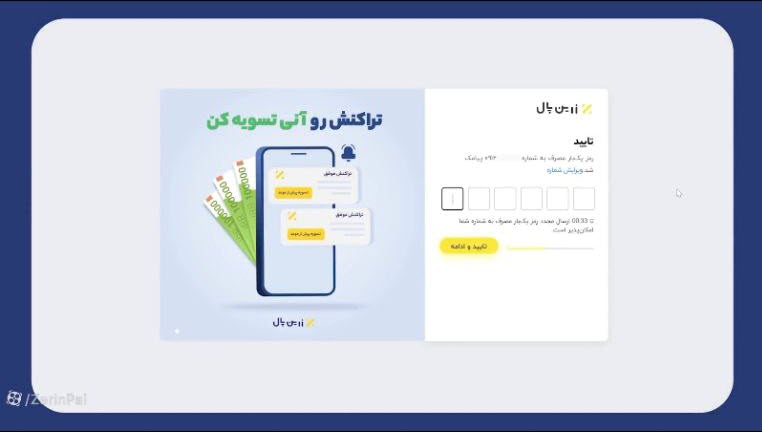 نام و نام خانوادگی و شماره تلفن را تکمیل کرده و کد شش رقمی ارسال شده را وارد نمایید.