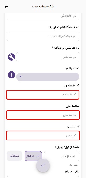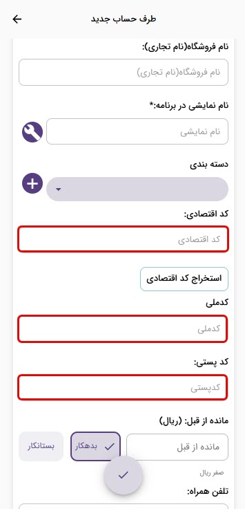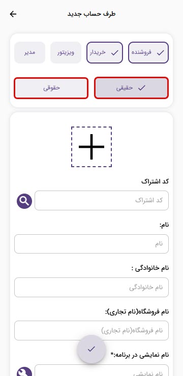 نحوه ثبت اطلاعات حقیقی یا حقوقی در برنامه موج پلاس:
