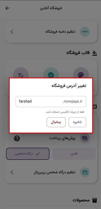 در قسمت تنظیمات برنامه موج پلاس بخش فروشگاه آنلاین گزینه تنظیمات دامنه رو انتخاب کنید و نام فروشگاه رو به صورت لاتین بدون فاصله وارد کنید به شما لینک کاتالوگ آنلاین داده می شود.