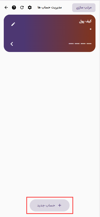 خیلی از افراد از حساب کیف پول برای ثبت دریافتی/پرداختی ها استفاده میکنند که ما توصیه نمی کنیم!!! اگر بخواهید ثبت تراکنش ها با حساب واقعی همخوانی داشته باشه قطعا باید یک حساب جدید، معادل حساب واقعی اینجا کنید.