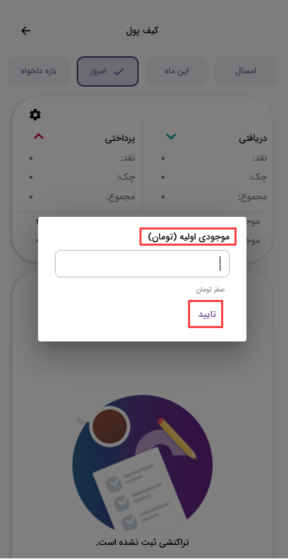 اگر تمایل داشتین به کیف پول موجودی اولیه بدید میتونید که از طریق  آیکون مداد، ویرایش رو انجام بدین و موجودی اولیه را وارد کنید و تایید را بزنید.